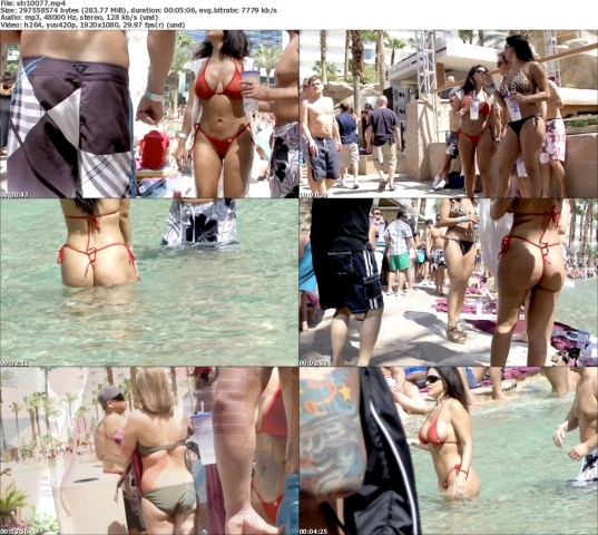 プール内では、巨乳と紐パンのお尻が揺れ動きます。