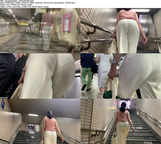 【プレミアムクラス】夏の!セレブ奥様の食い込みパンツ、階段上りに密着!