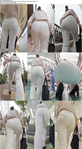 【尻HD】ストライプのパンツに思いっ切り喰い込んだパンティーライン透けさせる営業お姉さんw