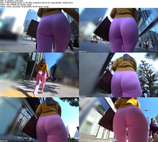 デカ尻お姉さんが街なかを歩行中です!ピンクのパンツがパンパンで、はちくれそうになっています。