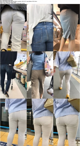 14:57~黒いパンツスタイルなのにお尻が大きいせいでパンティーラインがクッキリな通勤既婚者さん