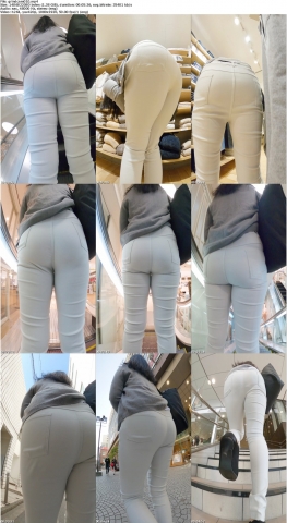 アイボリーのパンツに「大きめパンティー」がしっかり透けちゃってるお姉さん。