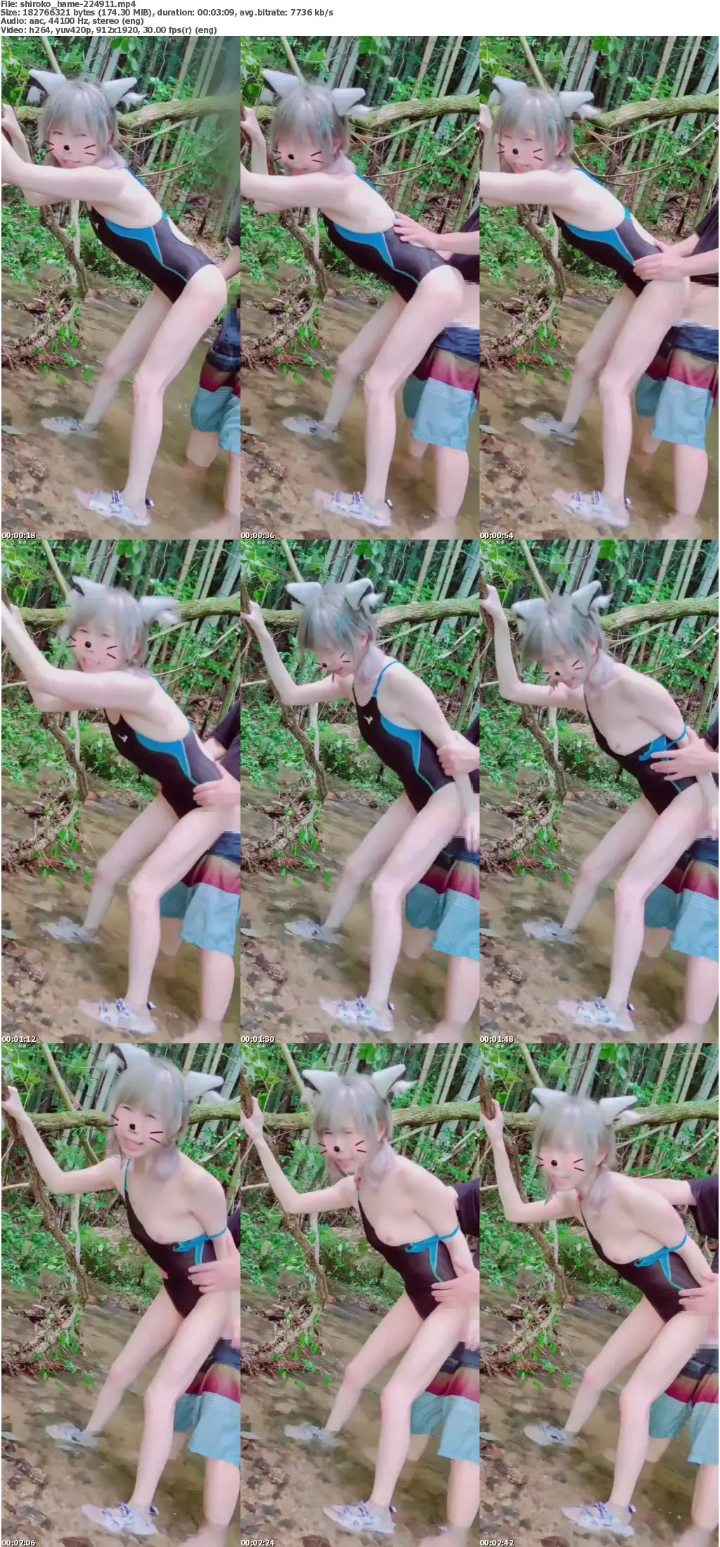 【野外コスプレハメ】川での銀髪猫耳女子競泳水着立ちバック【ブルアカ シロコ】