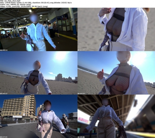 街中ではシャツの中でプルプルシェイクに揺れる爆乳。