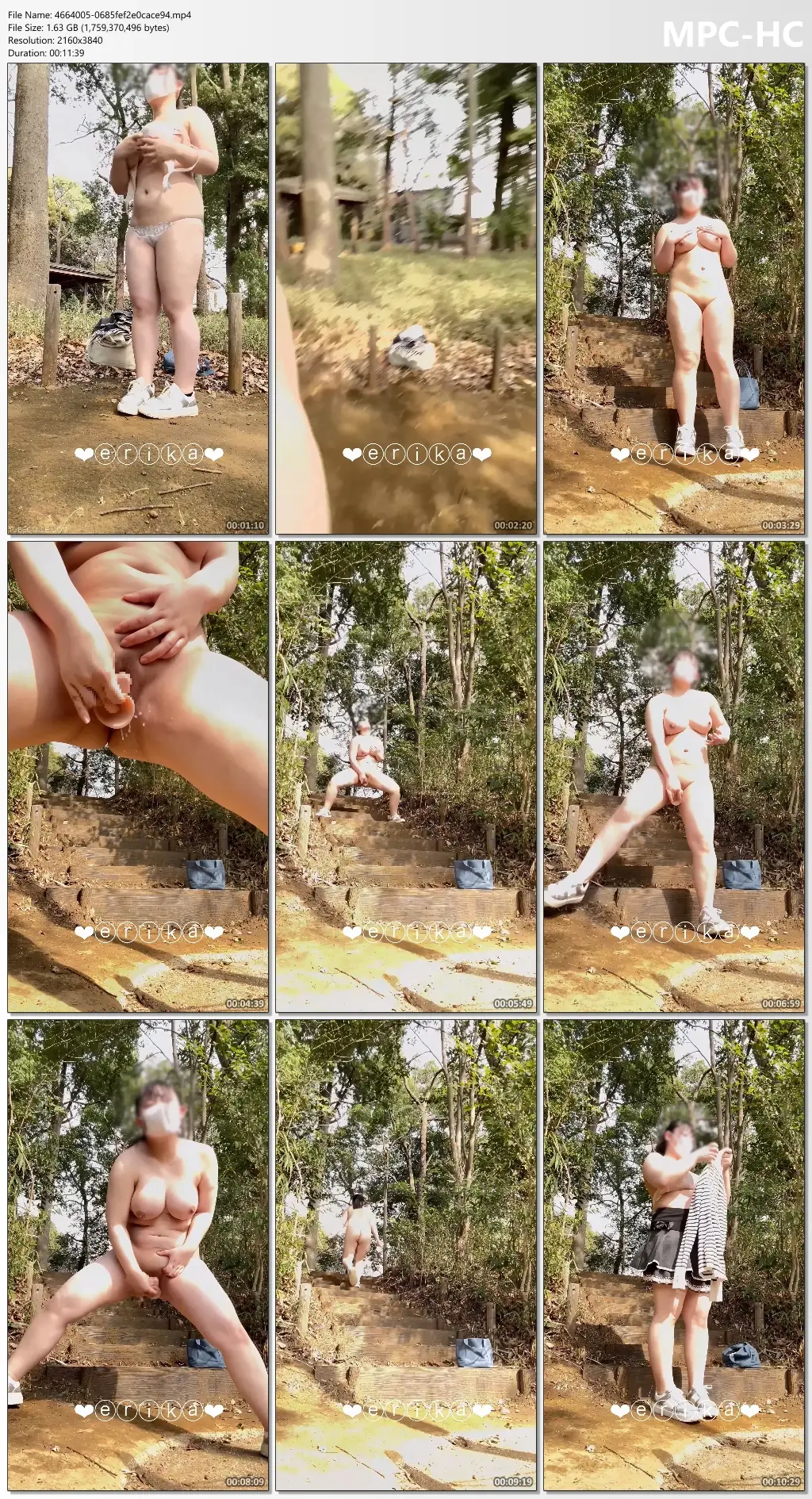 【19歳Gカップえりかの自撮り】☆彡公園で全裸になって、服をその場に置きざりにして違う場所に移動してからの全裸ディルドオナニー!誰か来たらもう絶体絶命なのに勢いでやっちゃった…///