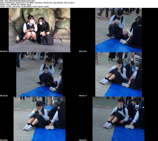 2人目 (TOP写真右1分29〜5分2秒)は芋感を漂わせてる子ですが、磨いたら輝きそう?!食事をすることに気を取られ、多少スカートを木にするものの、隠しきれておらず常時チラ。