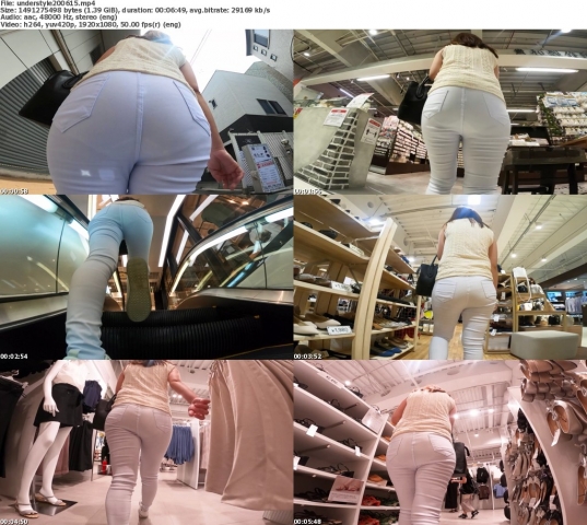 【FullHD】無自覚にホワイトジーンズにしっかりイエローパンティー透ける垂れ開く爆尻