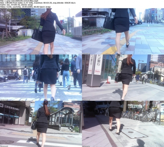 可愛いスーツ女子を歩行追い撮りをメインに前アングルまで♪