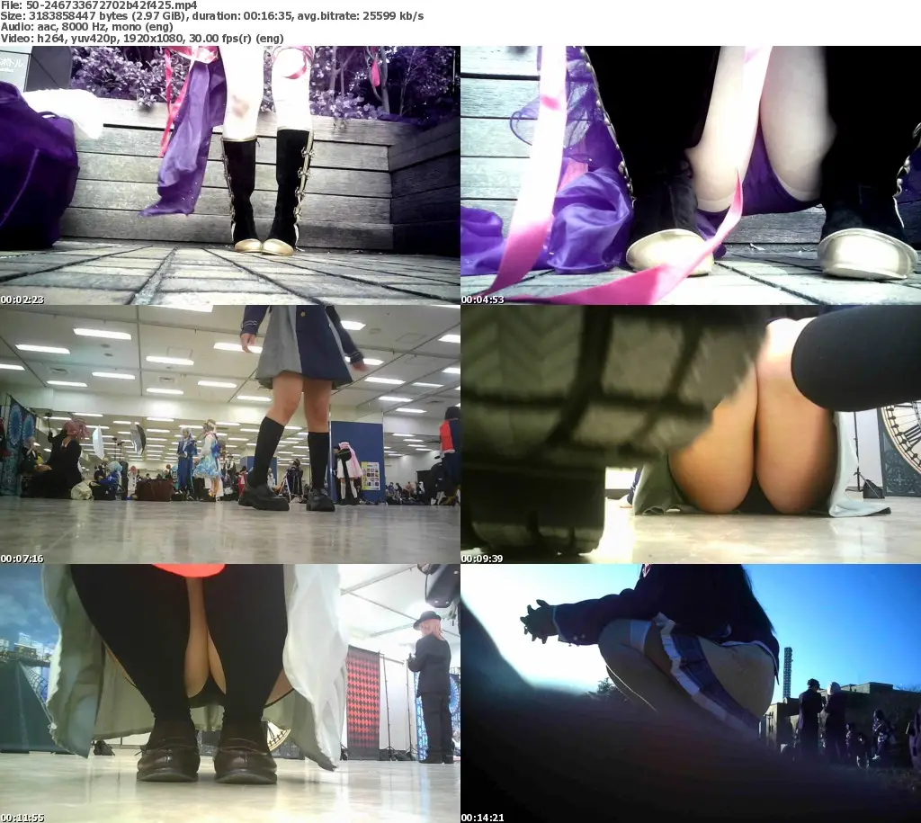 コスプレイヤーのスカートの中の黒アンスコを至近距離で動画撮影させていただきました。
