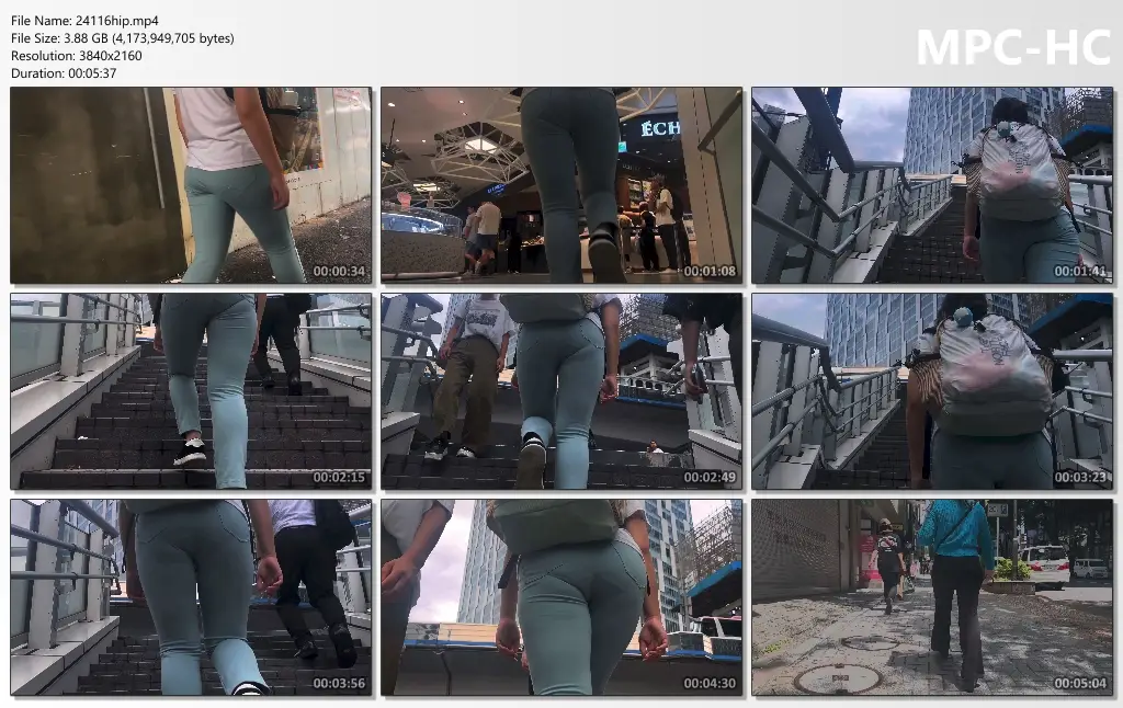 伸縮性のあるストレッチタイプのスキニーチノパンを履きこなすお姉さんが登場。リュックを前に掛けているためパッツパツの尻周りを楽しめます。特に階段を昇るシーンにおいては、タイトル通りフルバックのパンティが強烈にケツに食い込んで斜めにラインが走る様。これだけでも魅力的なのに、着衣尻フェチが好きなクロッチをイヤらしく浮き出しているのがたまりません。尻自体も、張りがあってパツパツした美尻のおかげでムニュムニュさせる姿は最高です。