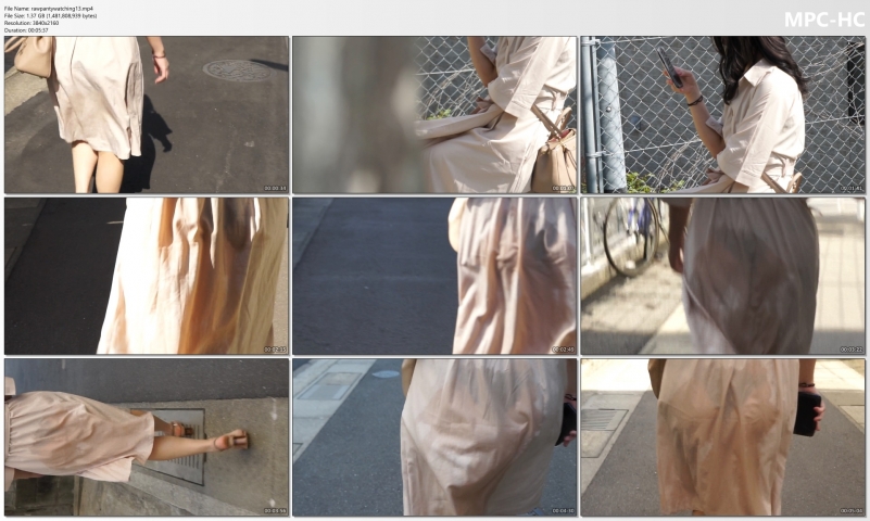 ダッシュで女性の背後に周り込み尾行開始。濡れてピタッと張りついたスカート越しにむっちりと揺れるお尻の肉感と透けるいやらしい大人パンティ!さらにさらに!!その姿で堂々と街中エロエロウォーキングと誰もが予想ができなかった神展開に大大興奮!!!その後、女性の姿は街に消えていきました。高性能高画質カメラで記録された女性の恥ずかしい羞恥記録を是非とも本編映像でお楽しみください。