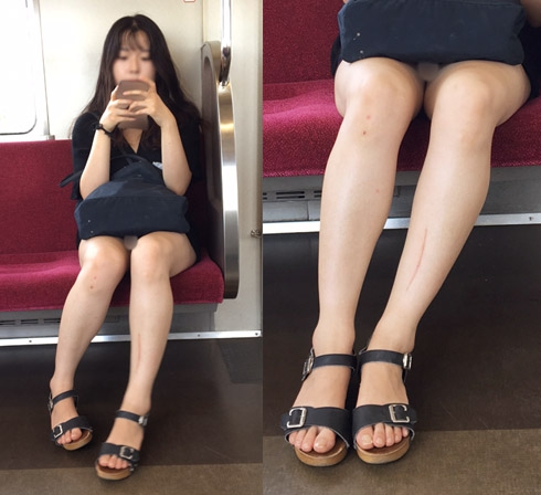 夏の電車内、正面の座席に白くて綺麗な肌が魅力的な美女を発見。透明感がある雰囲気でまさに正統派美女というルックスです。