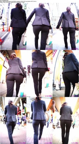 しっかりとボディに張り付いた黒パンツスーツOLです。