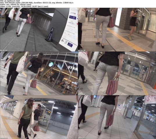 美*パンティーライン通信*しつこい追尾に思わず尻をガードしようとする清楚系グレーパンツOL