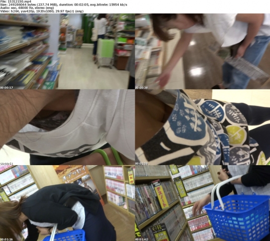 今回の見どころは、7人目に登場の美人OLさんです。白のチェックのトップスにカーディガンを羽織っておられた美人さん。マンガレンタルのお店で物色中です。マンガ選びに夢中になっておられる隙に胸元の隙間を拝見です。一応白のインナーらしきものも確認できますが、豪快に前屈みの体勢になっていただくと目の前にはキレイなおっぱいの全景が飛び込んできました。美人OLさんのお仕事帰りのおっぱいをこっそりいただく、我ながらいい仕事をさせていただきました。