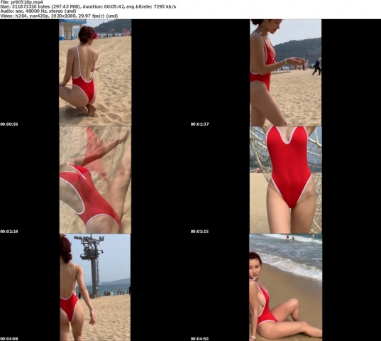 高画質 美尻!海水浴場で水着が浮いて巨乳はみ出し!ハイレグ美人
