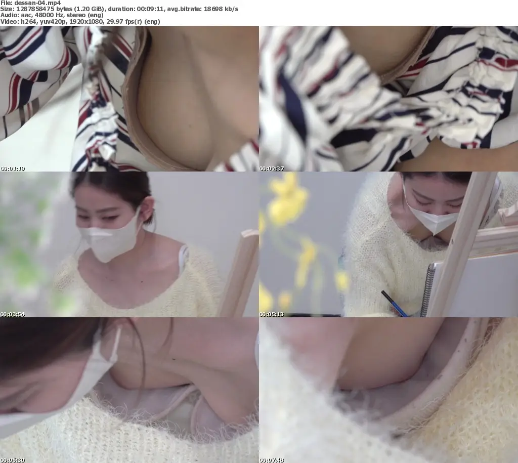 [お絵描き教室/胸チラ④]黄色ニット美人JD/ゆるゆる爆乳ママさん前屈み胸ちら!/計2名